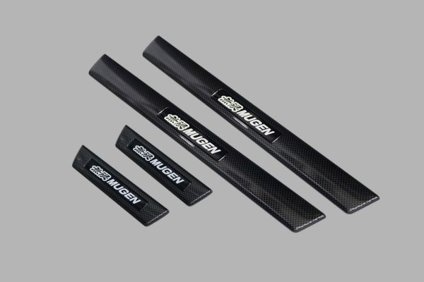 คิ้วบันได ลายคาร์บอน MUGEN ป้องกันรอยขีดข่วนและคราบสกปรก เสริมลุคสปอร์ตให้ภายในรถ ประกอบด้วย 4 ชิ้น (หน้า 2 หลัง 2) ขนาดหน้า 400×35 มม. หลัง 170×35 มม.